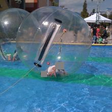 常設ではないと思われる、水の上で大きなバルーンの中に入って遊ぶ遊具(有料)があって子供は楽しんでました。