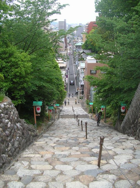 道後温泉駅からまっすぐに道なりに進むと階段に突き当たりますので、