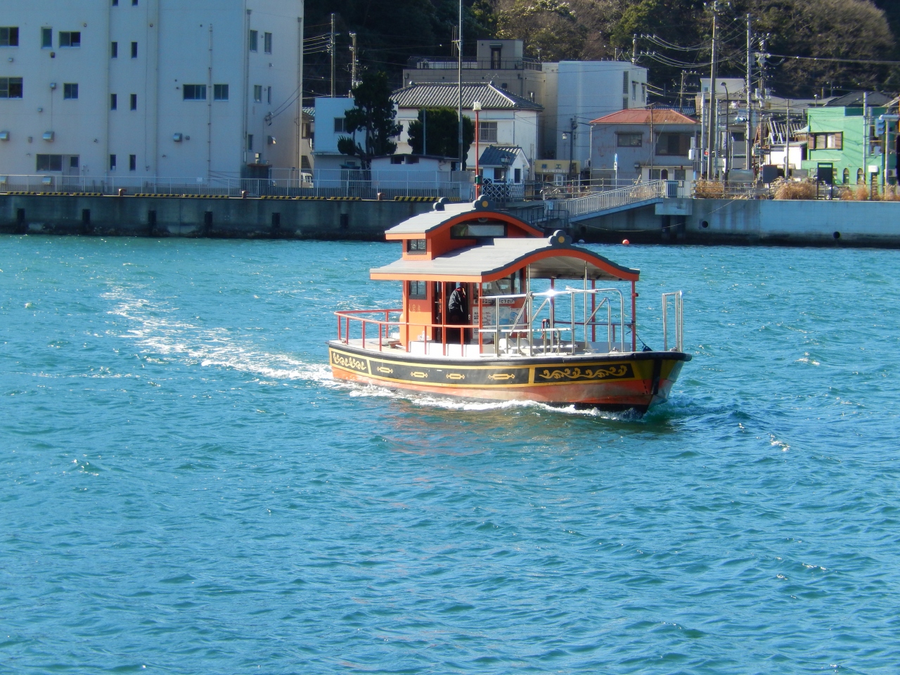 西叶神社の前の浜から、浦賀の渡し舟が東浦和に向けて出ています。