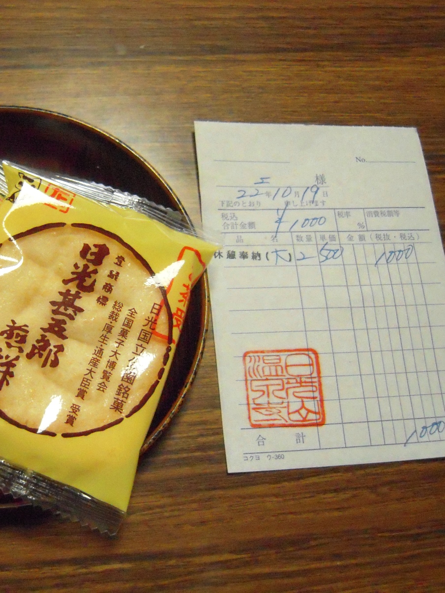 お煎餅(写真参照)とお茶のお接待があります。