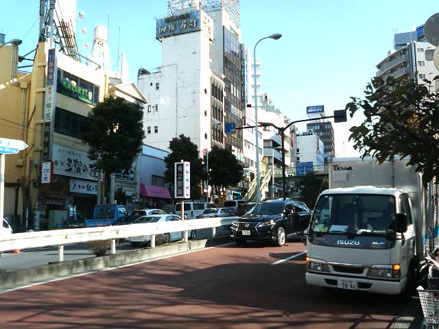 昼間でも交通量、歩道の人通りともに多く、ちょっと忙しない感じです。
