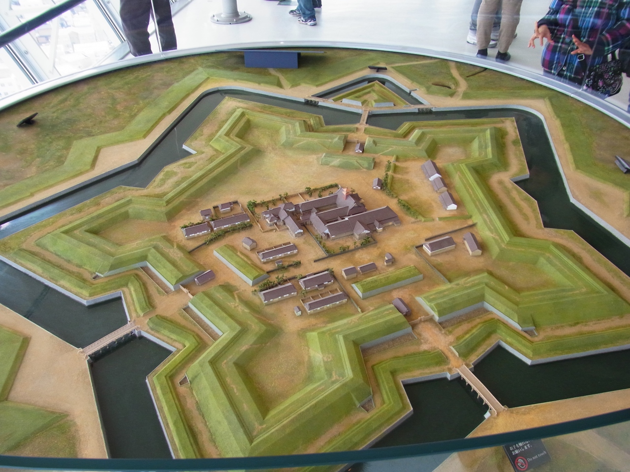 五稜郭タワーに昇ってみる。見晴らしはいいが、冬なので、枯れた芝生が見えるだけだ。桜の木も幹だけでさみしい。途中で土方歳三の銅像を見つけて思わず、並んで記念撮影をする。数年前に箱館奉行所も再建されたらしい。結構楽しいところだった。