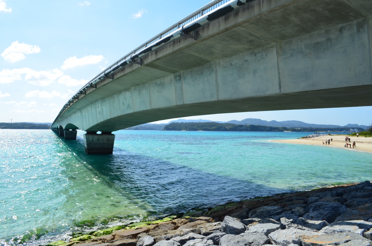 長い橋を車で走るだけでも充分に楽しめます。透明度の高い青い海を見ながらのドライブは最高です。ハイシーズンはわからないですがオフシーズンは駐車料金も掛からないので、ビーチをのんびり散策出来ました。道の駅にトイレもあるので安心。瀬底島とここは本島でトップクラスの美しい海を見ることが出来ます。