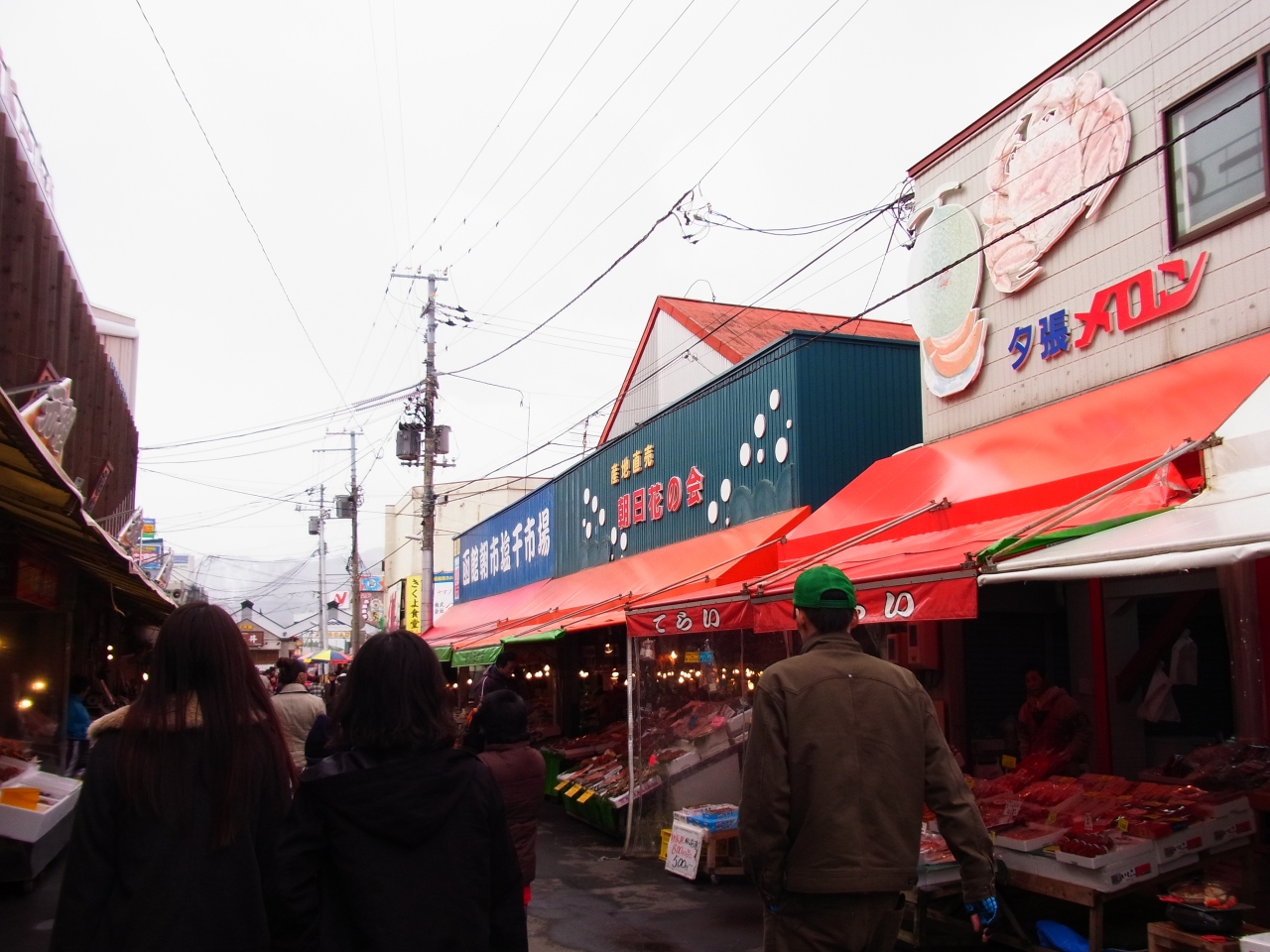 朝早く着くようにして、朝市で海鮮丼を食べようということになった。朝市は案外広くて、いろいろな店がある。イカを釣れるような店もあっておもしろい。蟹もホタテも売っているが、旅行の初日なので見るだけにしておく。いろいろな店で情報を仕入れておく。