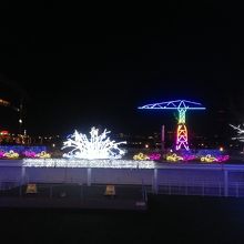 ららぽーと豊洲の屋外にあるイルミネーションです。まいばん光っています。レインボーな感じで目立ちます。レインボーブリッジも見えるので、素敵な夜景スポットです。買い物のついでに楽しめます。ベンチがあるので、座って眺められます。