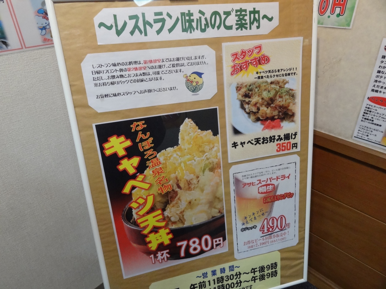 南幌温泉に併設された食事処です。南幌町の名産であるキャベツを使った「キャベツ天丼」を食べることができます。キャベツ天丼はボリューム満点で食べ応えがあります。サクサクに揚げているので、見た目よりも食べやすいです。その他、キムチラーメン等も美味しいです。