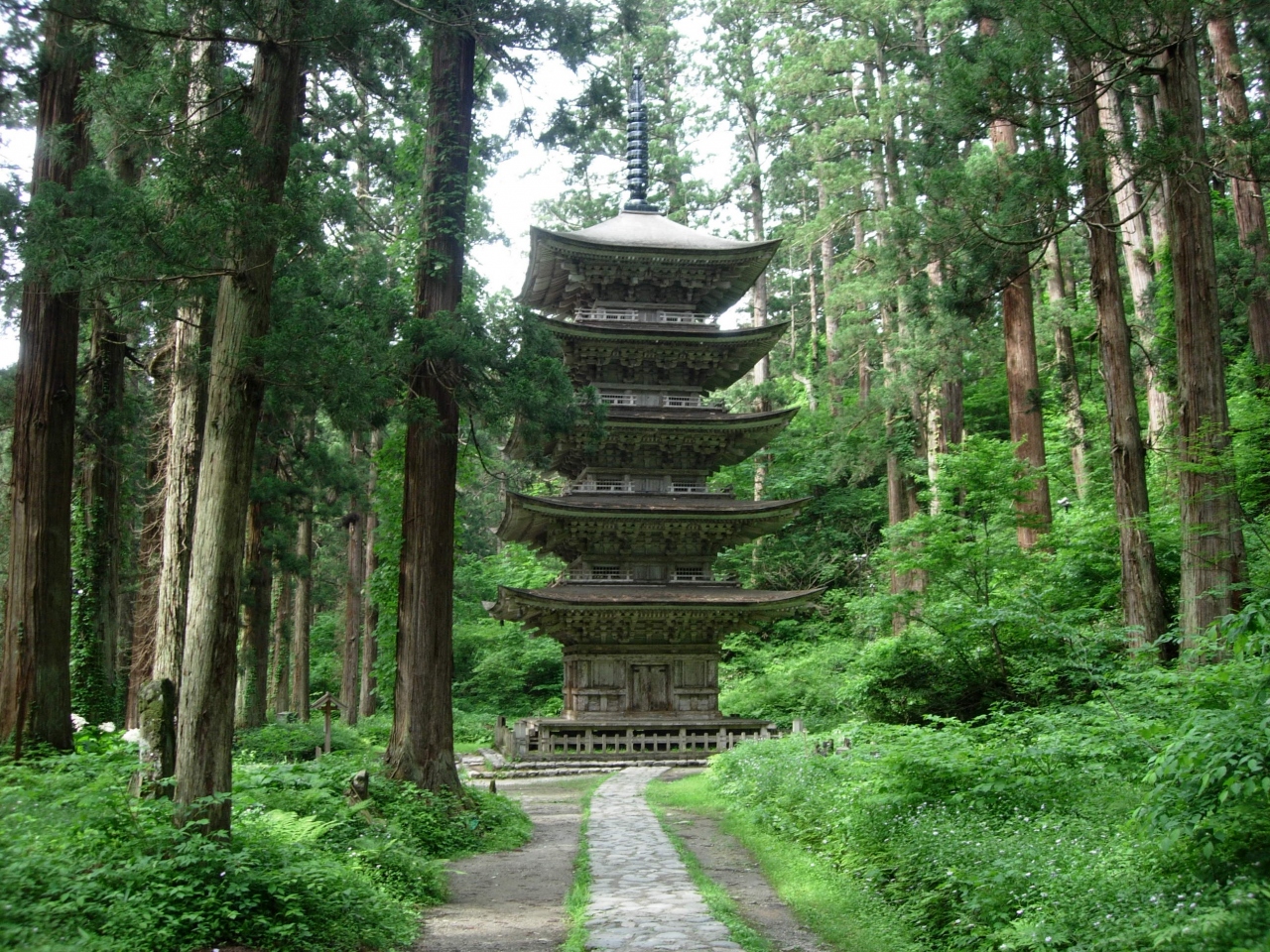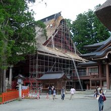 羽黒山の社殿の茅葺が分厚く、大きく、重厚で圧倒されました。サンダル履きで軽い気持ちで行ったのですが、五重塔が見たくて看板の案内にしたがって歩くこと・・・1時間以上歩いたでしょうか?山道をどんどん降り、サンダルだけに足は泥だらけで大変な目にあいました。が、行ってよかったと思える荘厳な山です。