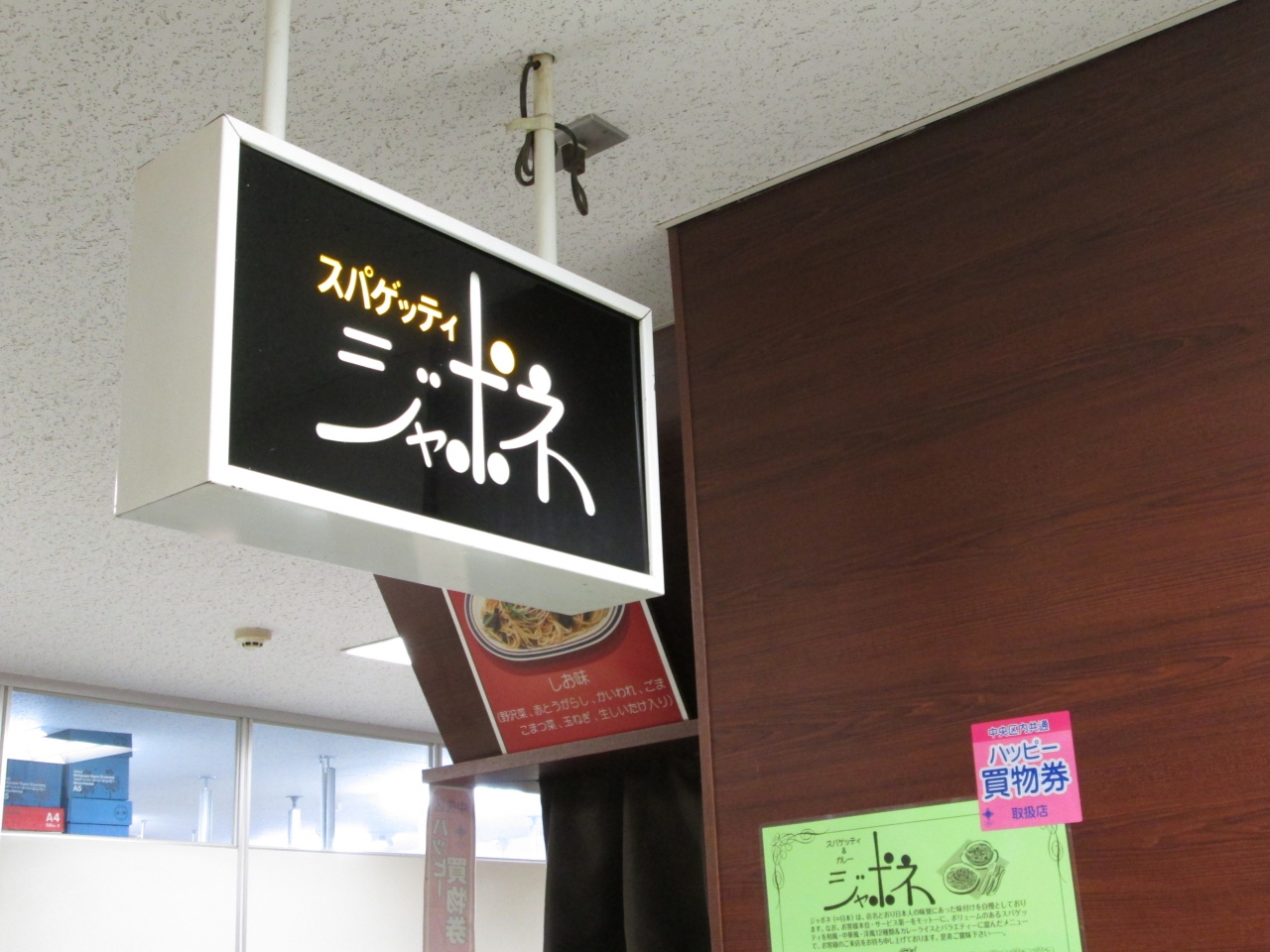 メインは、しょう油系の味のスパゲッティで、どんな味なんだろうと思いながら待ちました。頼んでみたスパゲッティは、お店の名前のジャポネにしようかと思っいましたが、ジャリコという少し具の種類が多いもの選びました。せっかくなので大盛りをいただきました。