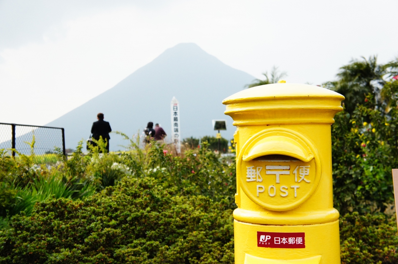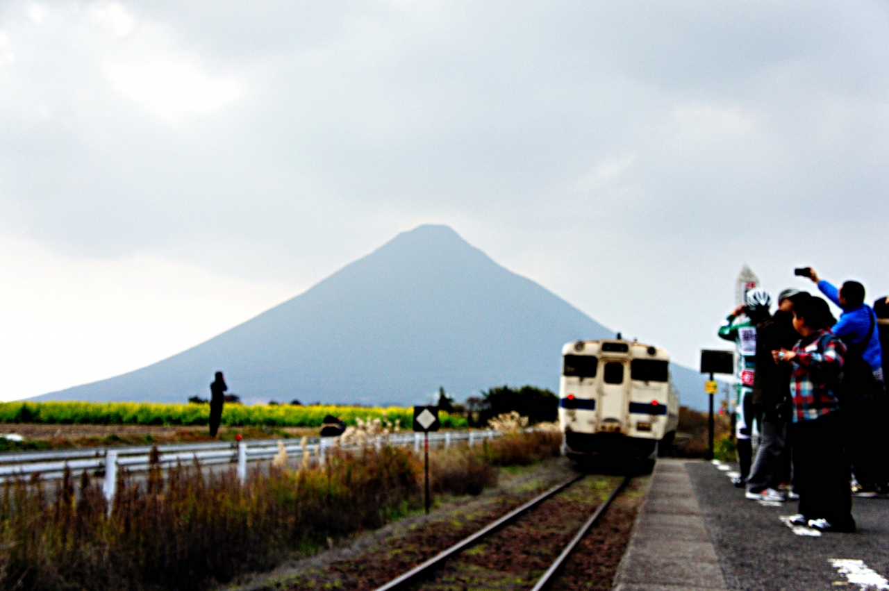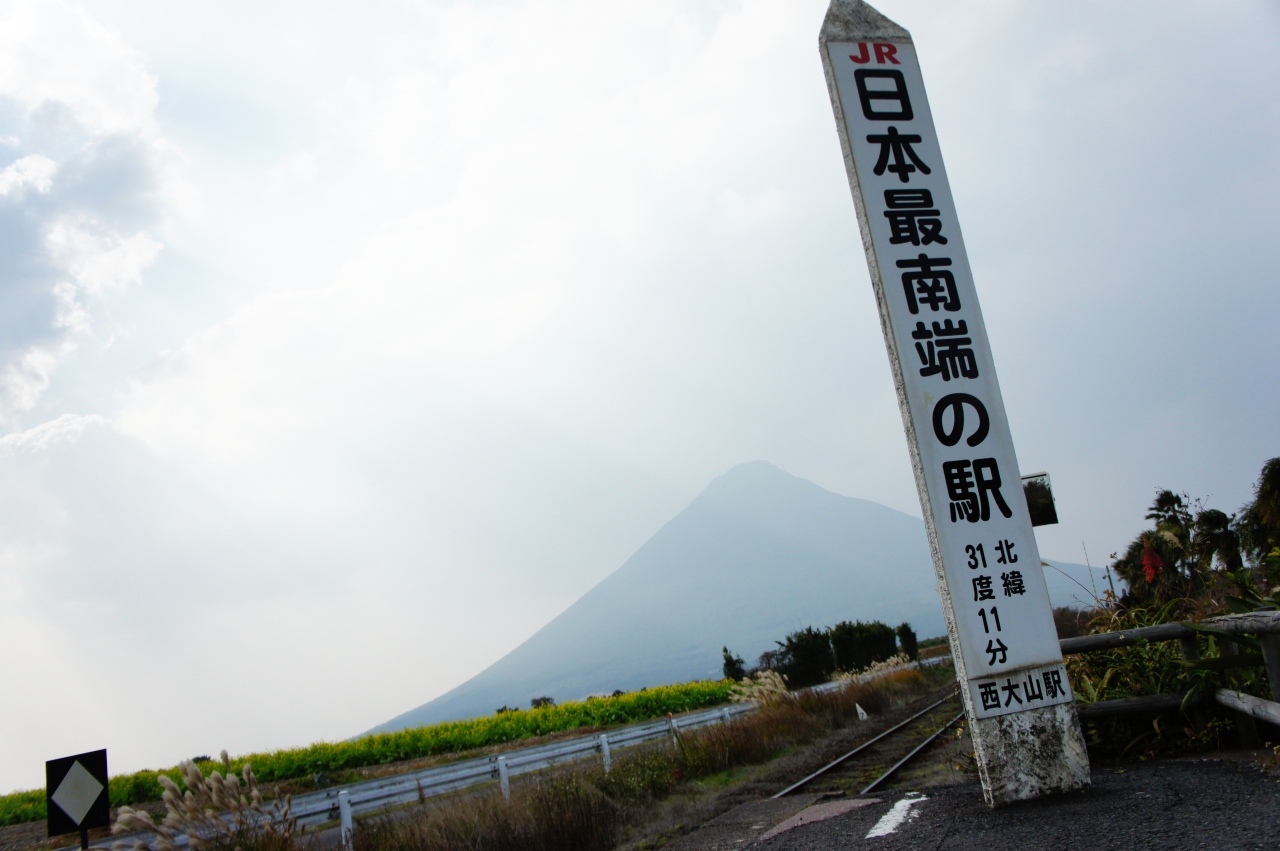 2014年の元日に訪問しました。最南端のJR駅です。開聞岳を背景にして,のどかな光景が広がっていました。昼下がりだったので,意外と多くの方が見学に来られていました。