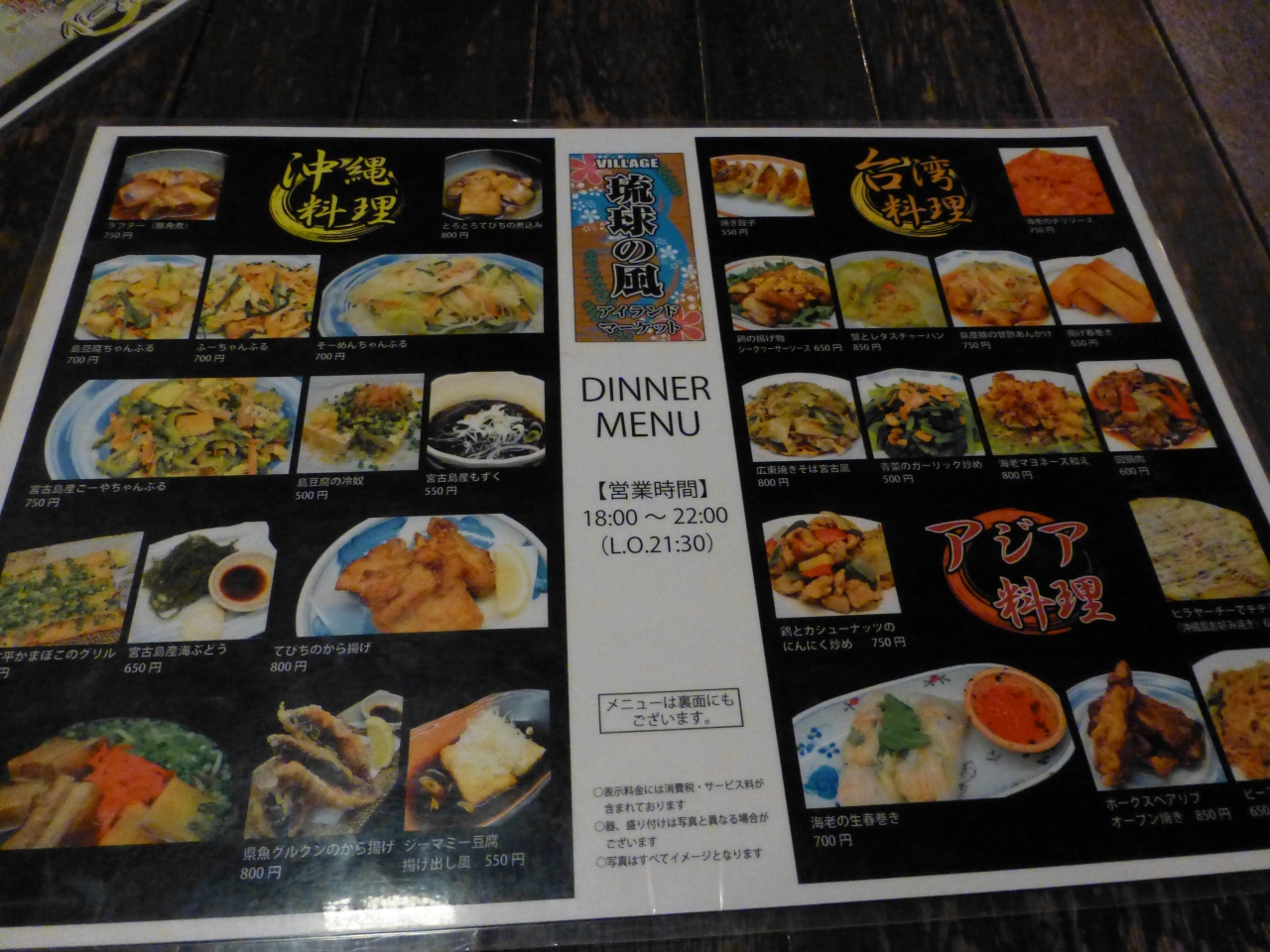 料理は沖縄料理を中心に色々あります。