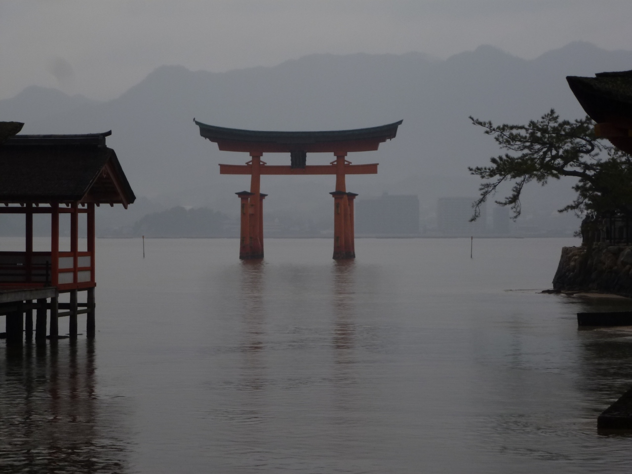 本殿や大鳥居が海に浮かんでいるように見え、平清盛によって修築された