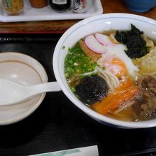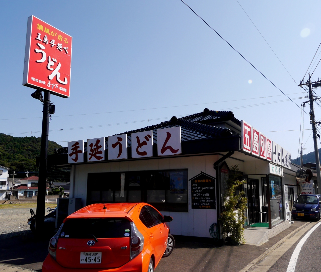 トンネルの出口に目立つようにあった本店で食べる.特製うどん650円.おいしかった.うどんはやや細身で,具が多くておいしい.汁は関西と関東の中間のような味付け,薄味ではない.五島名物なのでどこかで食べたほうがいいが店は有川地区と浦桑地区に集中している