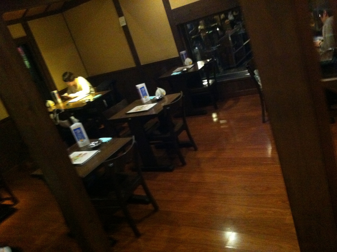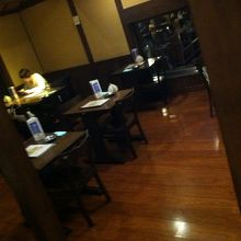 さやの湯にある食事処です。お風呂の後に、中庭を見ながらくつろいで食べれます。