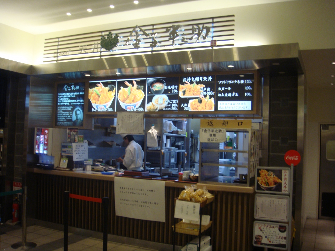 日本橋三越の路地奥にある「金子半之助」は、昼時には50~60人ほど並んでいますが、ここラゾーナのフードコートにある店舗は、平日なら並ばなくてもいただくことができます。江戸前天丼980円、天丼880円、味噌汁100円と価格は本店と同じです。