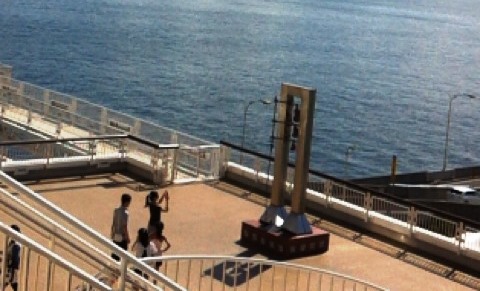 海ほたる施設中央にあるエスカレーターで4Fに行くと、木更津側に幸せの鐘があります。
