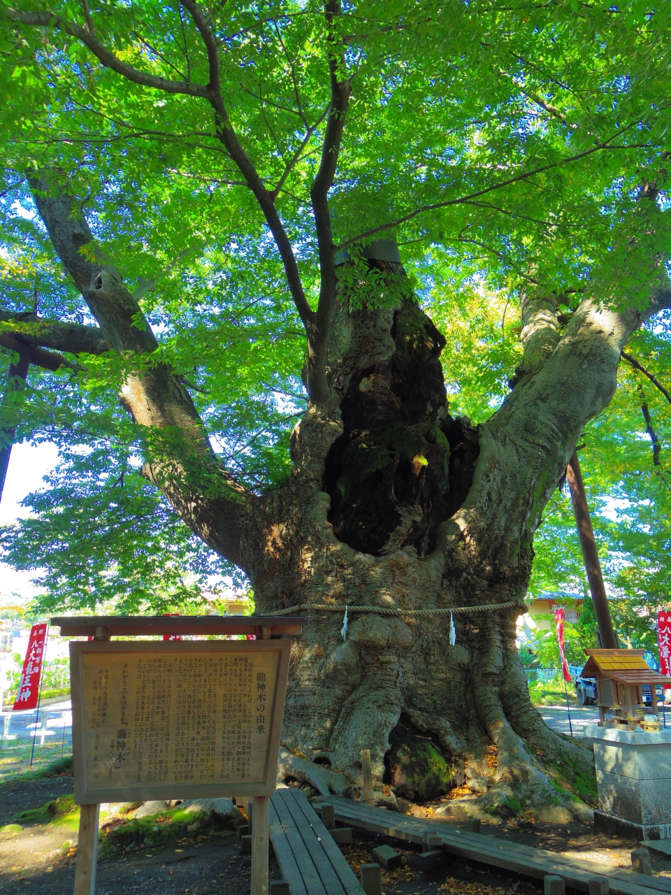 境内に入ると樹齢千年を越える大欅(龍神木)が目を引きます。