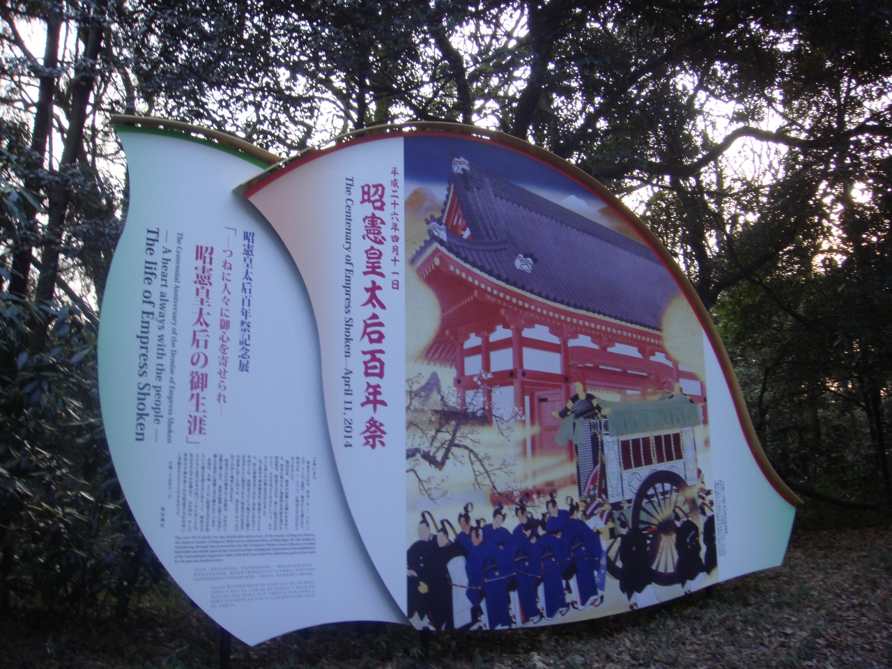 平成26年4月11日は昭憲皇太后御が崩御されて満百年。「昭憲皇太后百年祭」が行われます。昭憲皇太后は明治天皇の皇后で、不幸なことに身体が弱く、御子に恵まれなかっため、皇子女は一人もおられなかったようです。また明治神宮の御祭神でもあることから、このような祭礼が行うとのことです。