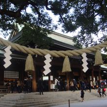 明治神宮は内苑と外苑に分かれており、内苑には都内とは思えない自然が残っています。その中でも神殿の両側には二本の大きなクスノキがあります。 このクスノキは、「夫婦クスノキ」と呼ばれ、縁結び、夫婦円満の象徴のようです。一本の木の前には大きなしめ縄と賽銭箱、もう一本の木の前には絵馬がかかっておりました。