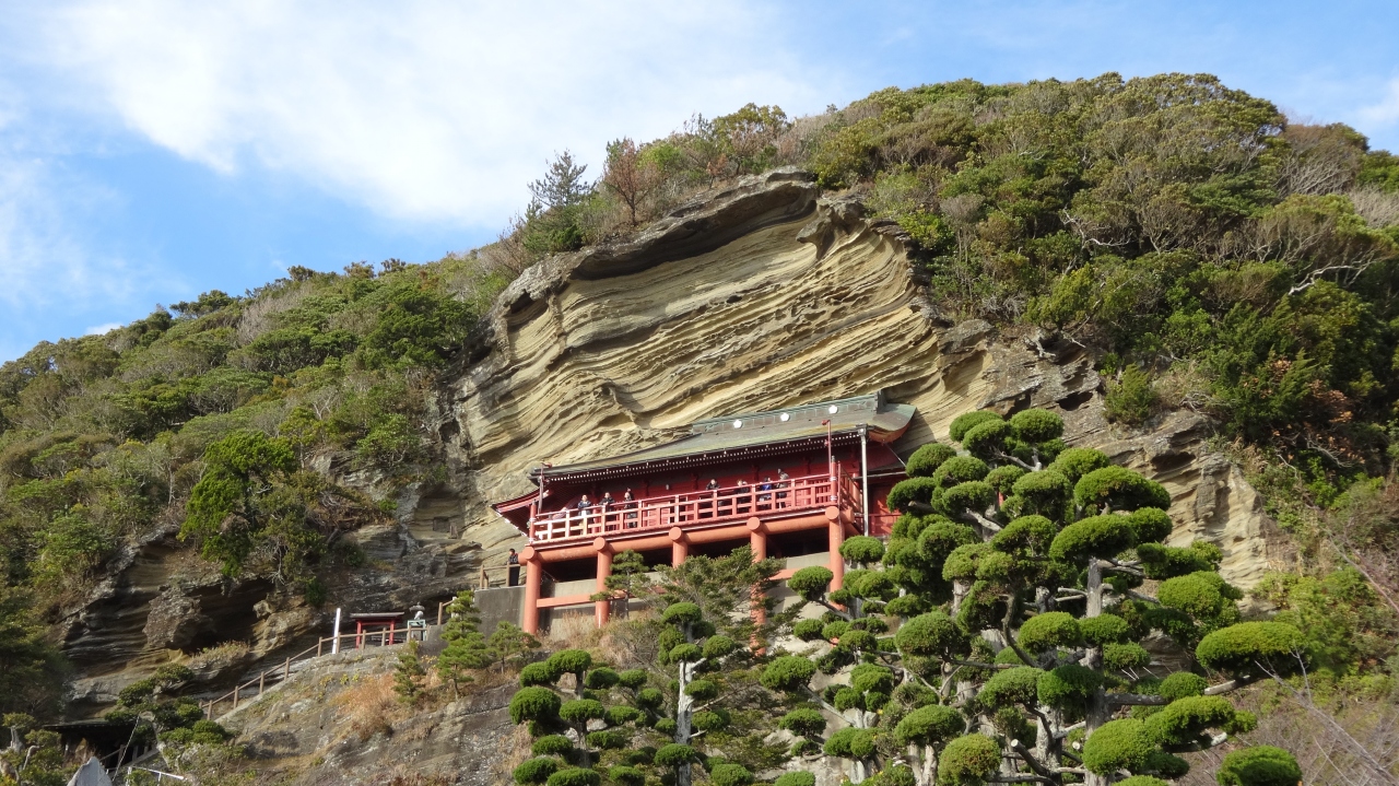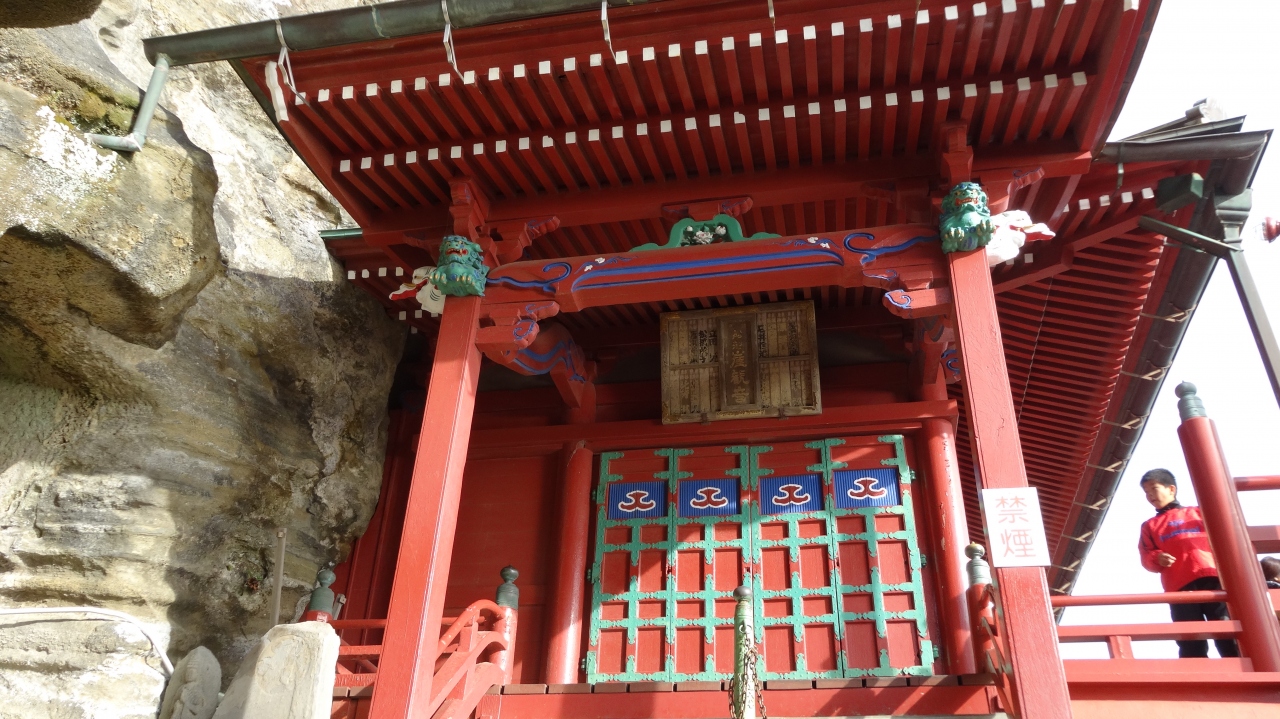 有名な崖観音です。崖淵にありますので登るのは高齢者にはちょっときついかもしれませんが、登れば絶景が見られますので頑張ってください。
