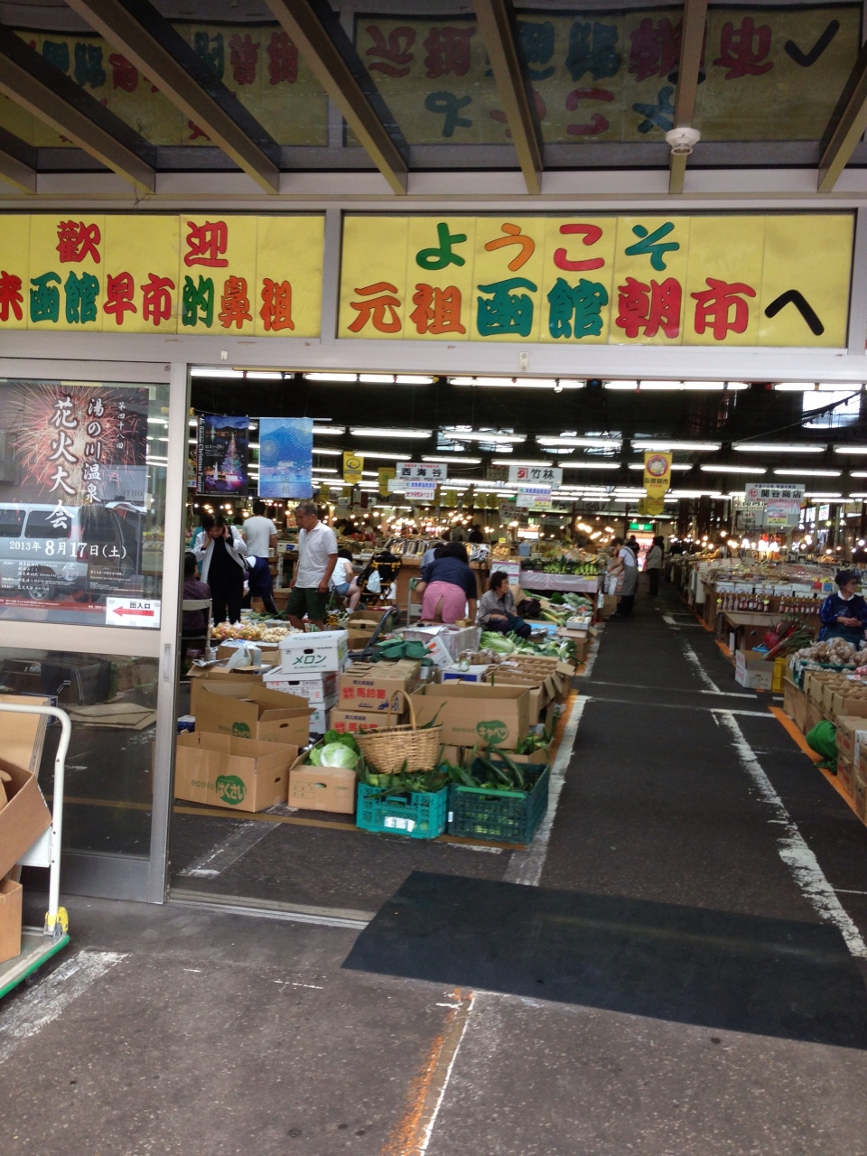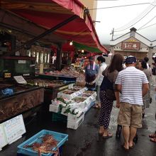 函館朝市は、ふらっと、歩きながら、店の前の屋台で、ホタテの貝焼き、うにの殻を取ったもの