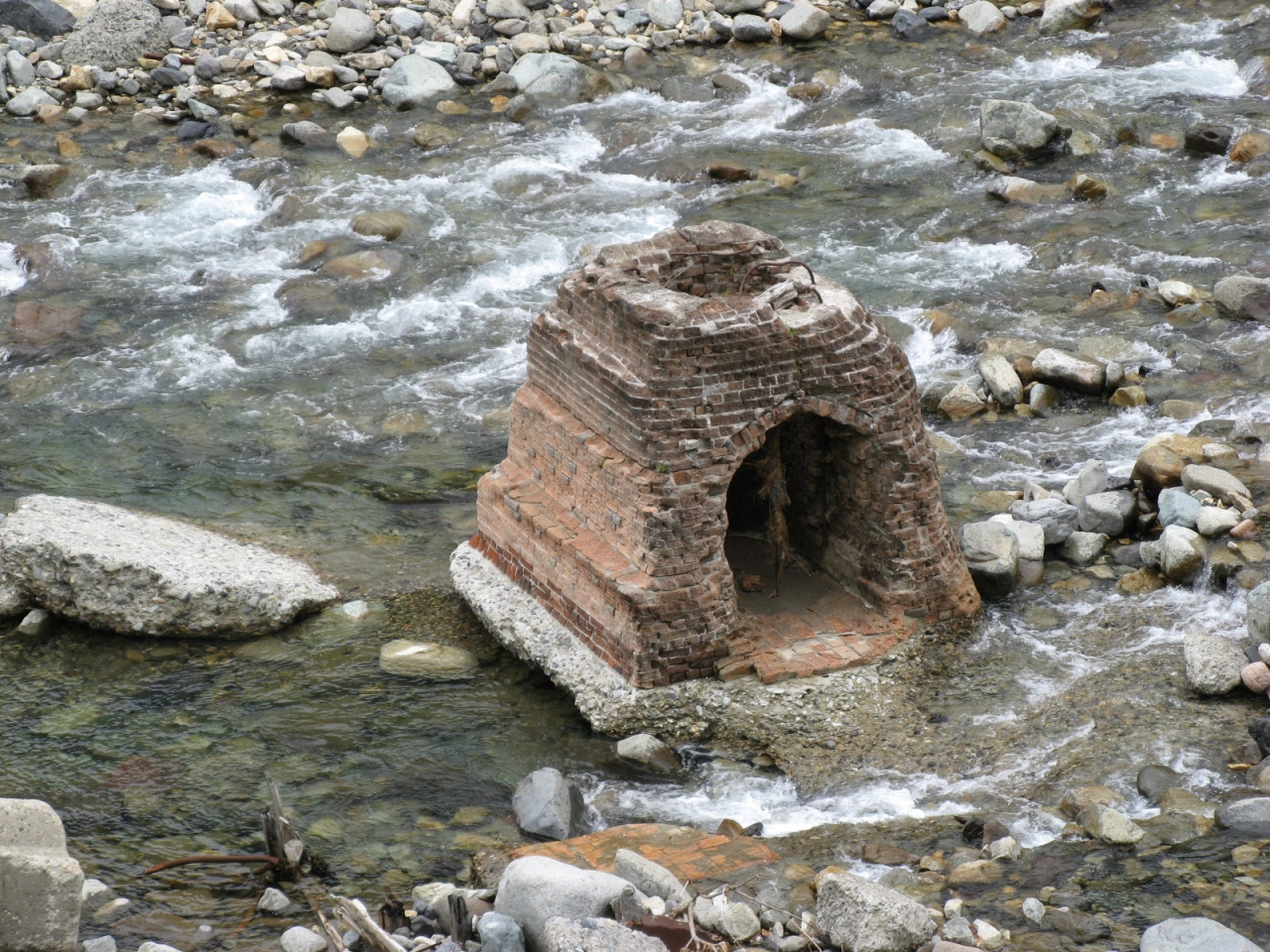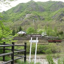 「間藤水力発電所跡」は、わたらせ渓谷鐵道の間藤駅より約1km、渡良瀬川沿いにある日本で3番目に古い水力発電所の跡です。