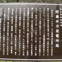 明治十年(1877年)より足尾銅山を経営した古川市兵衛が、それまでの銅山の動力源である、薪、木炭に代わるべきものとして、 ドイツのジーメンス電気機械製造会社のヘルマン・ケスラー技師の勧めにより、 はじめて水力発電の導入にふみきり、明治二十三年(1890年)に建設したものです。