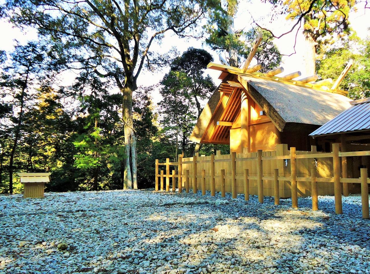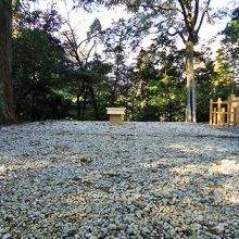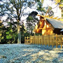 隣には古殿地があって、心の御柱の覆い屋が設けられています。