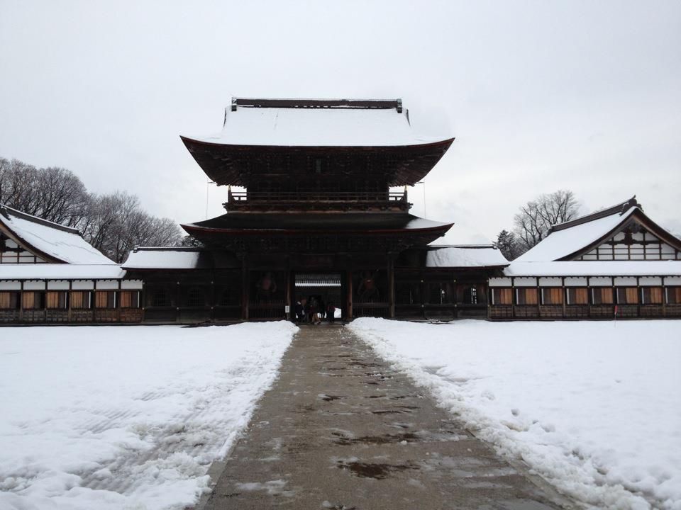 富山は豪雪地帯でこの日も雪が降ったりやんだりしていた。雪の白さに厳かな気分にさせられました。高岡駅から徒歩でアクセス可能。参拝料500円支払い仏堂にはいれます。
