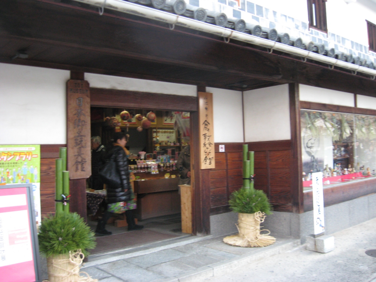 倉敷美観地区を倉敷川に沿って歩くと、日本郷土玩具館があります。昔の米蔵を改造したといいます。さすがに風情のある佇まいのなかに、多くの目を引く玩具作品の数々が展示されています。ここで造られている干支の置物が好きで、毎年買っています。