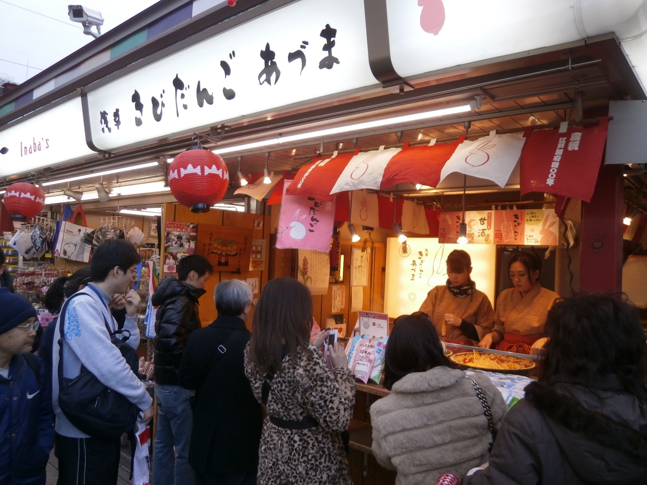 浅草雷門から浅草寺へ向けての通り沿いにきびだんごを販売している店があります。