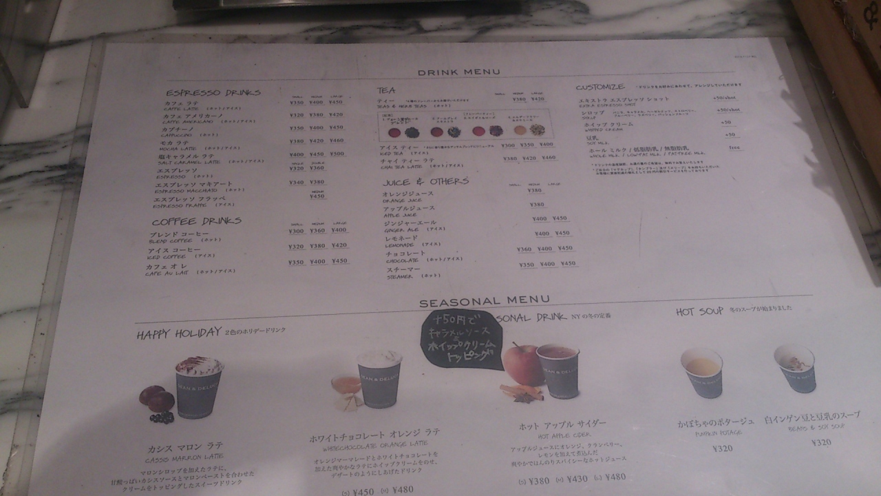 カフェもかなり種類が多いのでお好みで選べます。