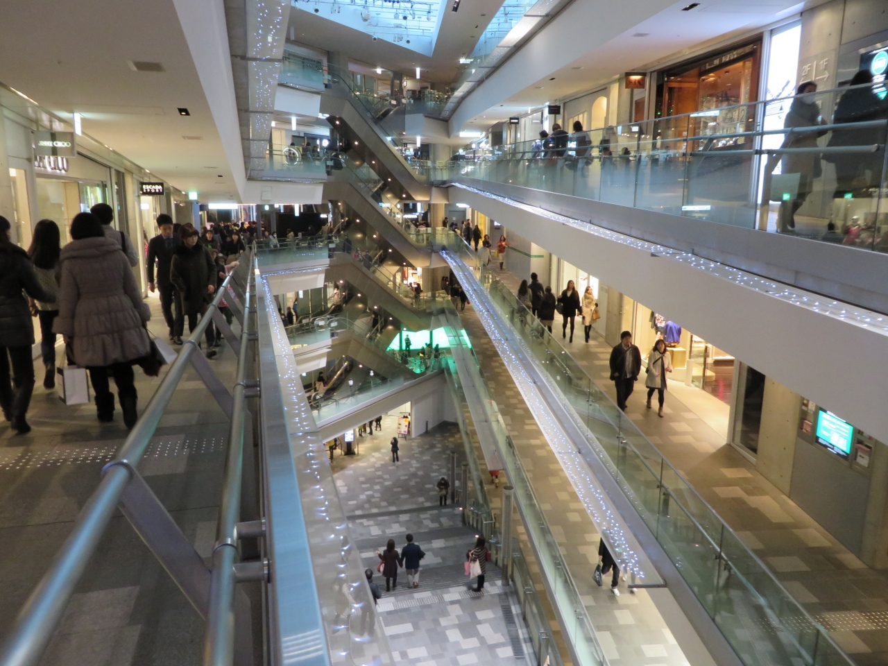 建物の場所が原宿駅方面に向かってなだらかに下っている場所であり、その傾斜に合わせて建物内の通路も傾斜が付いているのがユニークです。