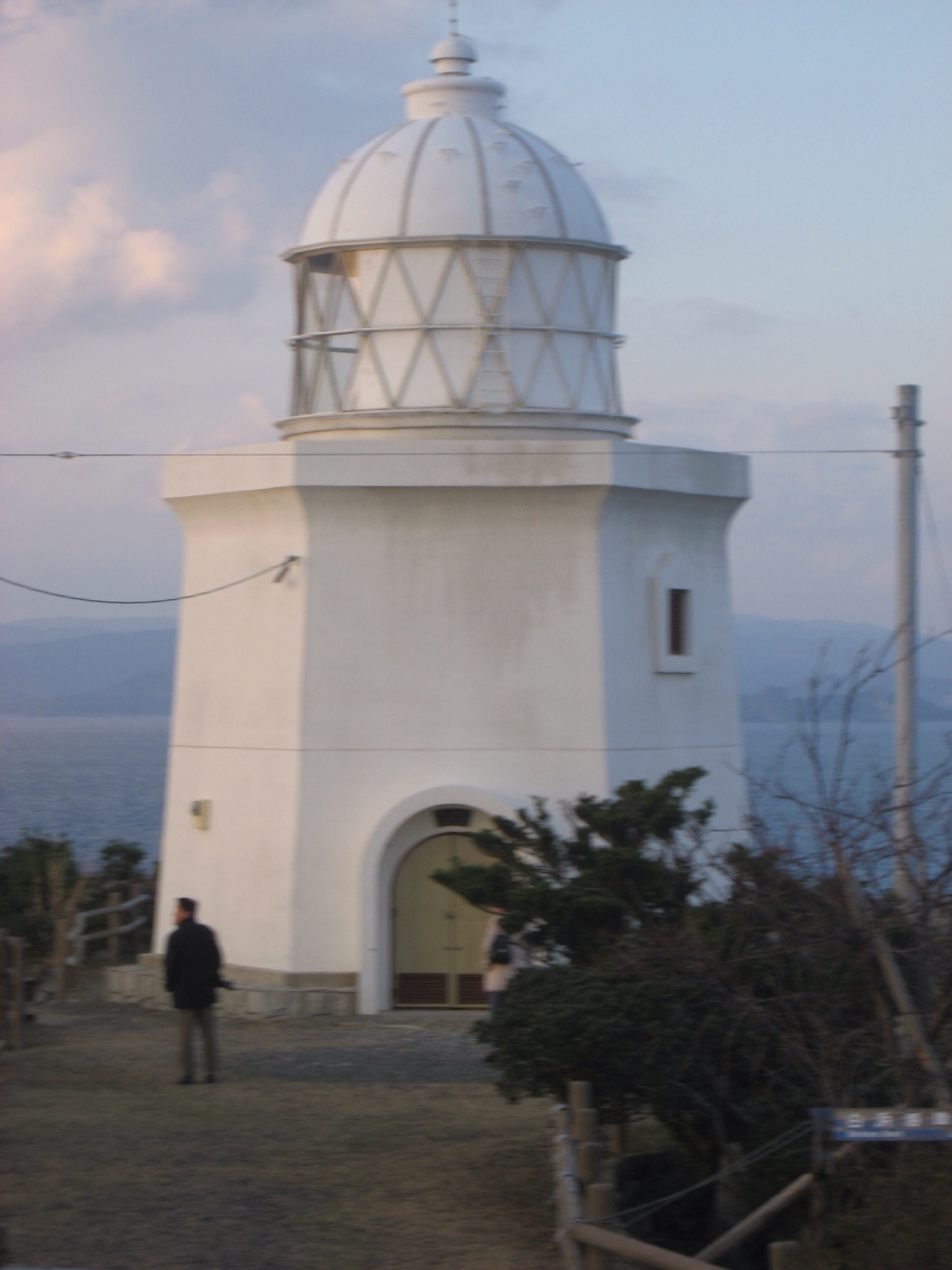 伊王島の西端に佇む白亜の美しい灯台。島で一番の高台にあるため、ここからの景色は絶景です。市内中心部からは離れていますが、この灯台も原爆投下時に被爆した形跡があるそうです。当時の様子を記したパネルなどがありました。