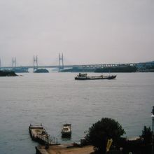 瀬戸大橋は、岡山県と香川県を直結する本州四国連絡橋のひとつで、ルートは道路37.3?、鉄道32.4?で、海峡部9.4?に架かる6つの橋梁からなりたっており、吊橋、斜張橋、トラス橋など世界最大級の橋梁が連なる姿は壮観です。鷲羽山の麓にある下電ホテルに宿泊したときに瀬戸内海沿いから瀬戸大橋を眺めて見ました。天気はもう一つでしたが、雄大な景色は感動的でした。ホテルから下津井の街に行くときには瀬戸大橋の下からも眺めました。