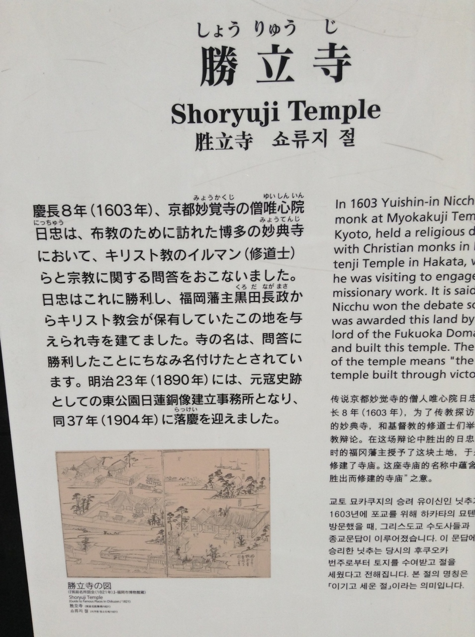 勝立寺は、天神の日銀近くにある日蓮宗のお寺です。