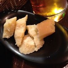 お通しにこのチーズが出てきて、おいしいと思いました、とても固いのですが、濃厚なチーズでお酒にとてもよく、合います。