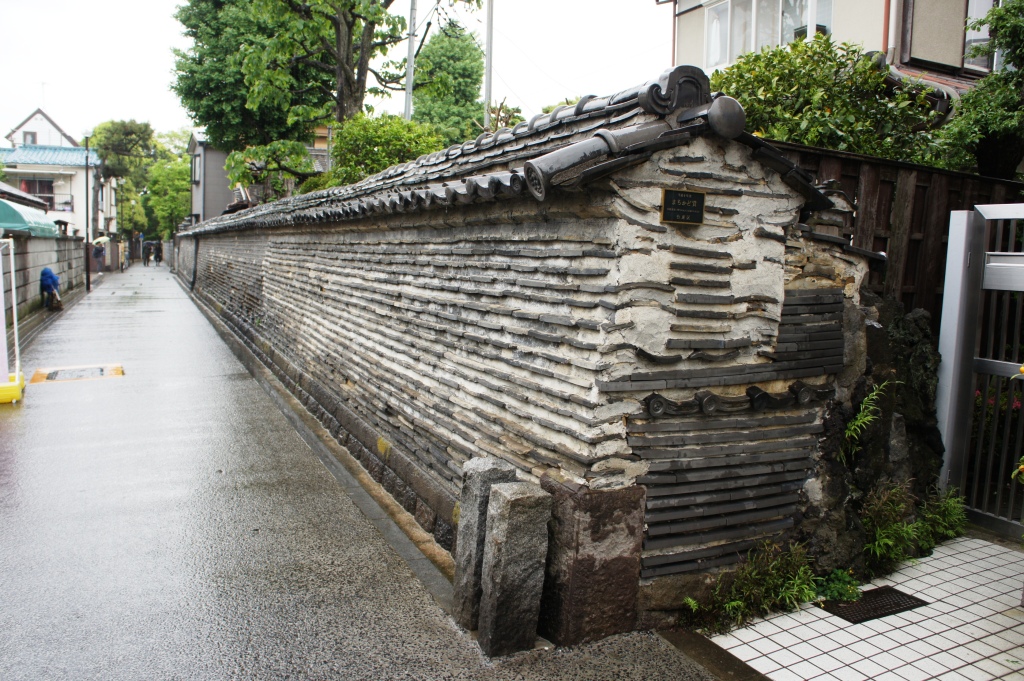 谷中一帯を歩くと、古い建物や塀などに出会うことができます。観音寺の築地塀もそのひとつ。土と瓦を交互に積み重ねた築地塀があり、長さ37メートルとなかなかの規模です。関東大震災にも東日本大震災にも耐えた強度をもってました。江戸時代の建造というからびっくりです。国の登録有形文化財でもあります。