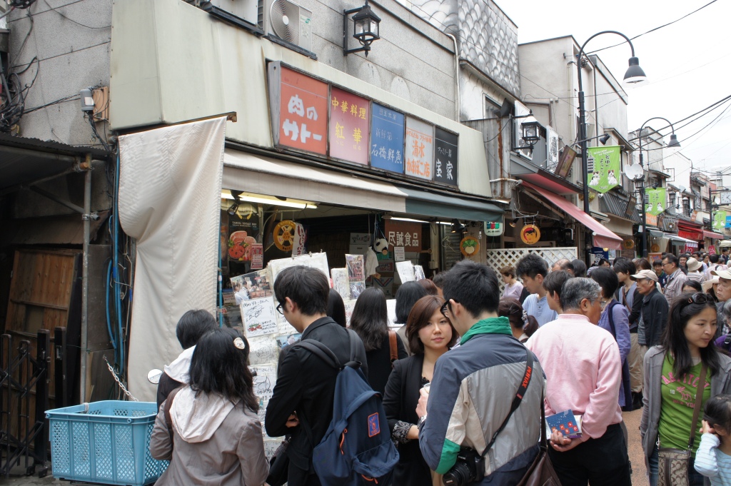 多くの観光客でにぎわう谷中銀座を歩くとあちこちで行列ができています。何だろうと思って近づいてみると、その多くがメンチカツやコロッケ。肉のサトーもそのひとつです。谷中名物「谷中コロッケ」。食べ歩き用にひとつだけ買う人もいればお土産用に何個も買う人も。並んでも時間がかかりそうなので、ちょっと遠慮しました。それにしても、東京の商店街ではホントにメンチカツ、コロッケに人が集まる姿を見かけます。揚げ物は面倒だけど、自分で揚げて食べた方が絶対に美味しいと思うんだけどなあ。