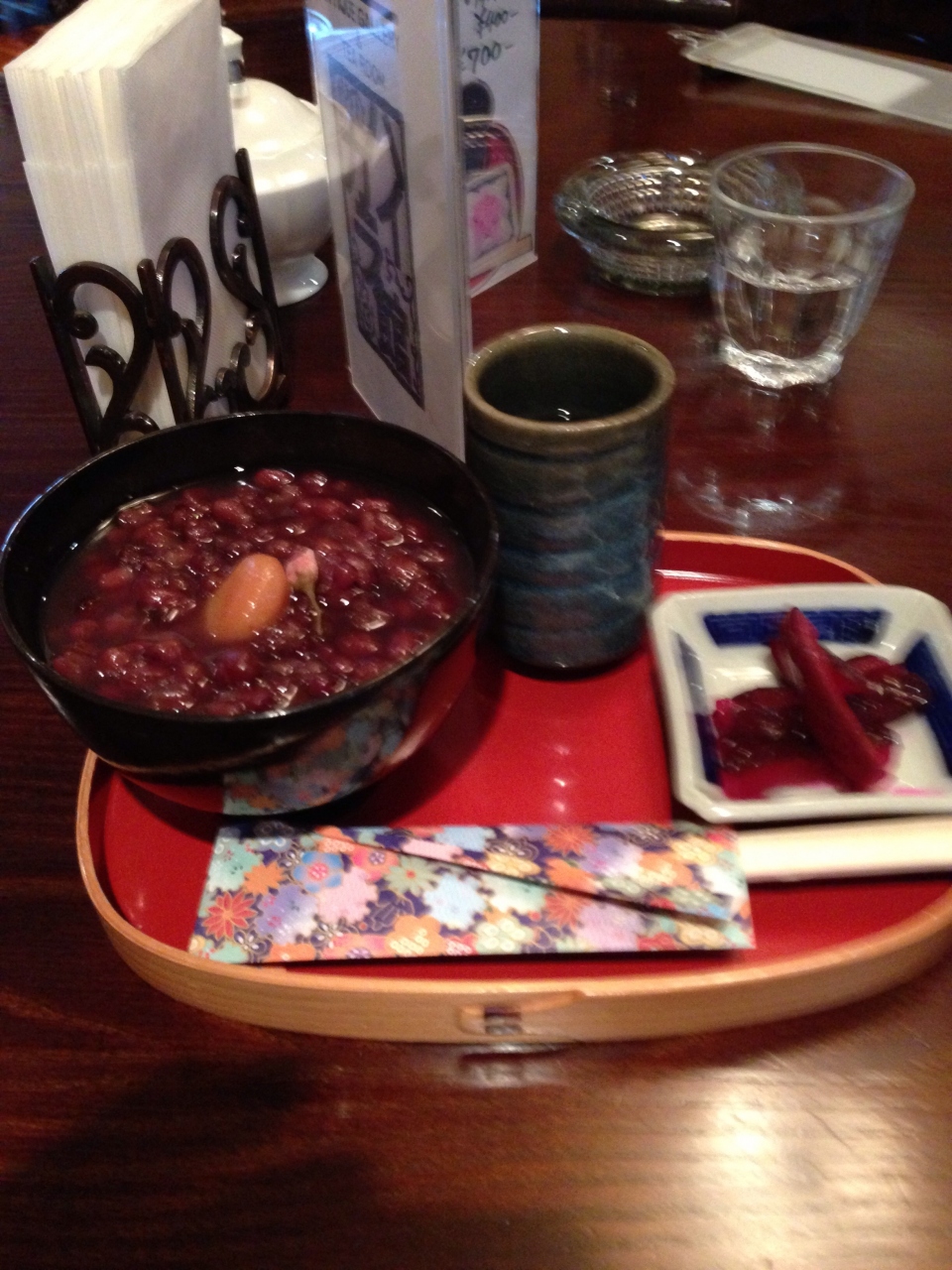 途中に喫茶があり、ぜんざいを食べました。寒い時は体が温まります。