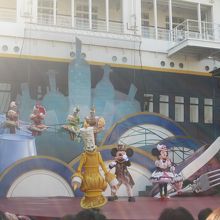 SSコロンビア号の前にあるドックサイドステージで行われるショー。