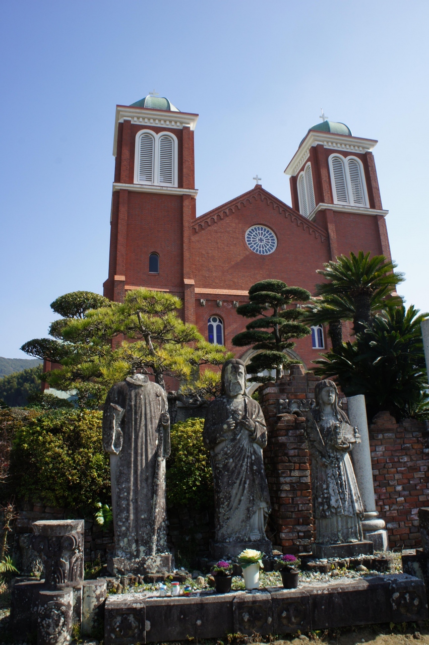平和公園から階段を下りていってまた上る高台にあります。禁教が解かれた後やっと大正時代に建設された東洋一の煉瓦造り教会だったのが原爆で破壊されます。今は教会は建て直され煉瓦タイルが張られて昔の姿になっているようですが、教会の前には原爆で破壊された像が安置されています。内部にも被爆マリアの痛々しい頭部があり、今の建物からは想像できない破壊状況であったことが想像できます。内部のステンドグラスは見事ですが、信徒でないと教会の祈りの場には入れません。