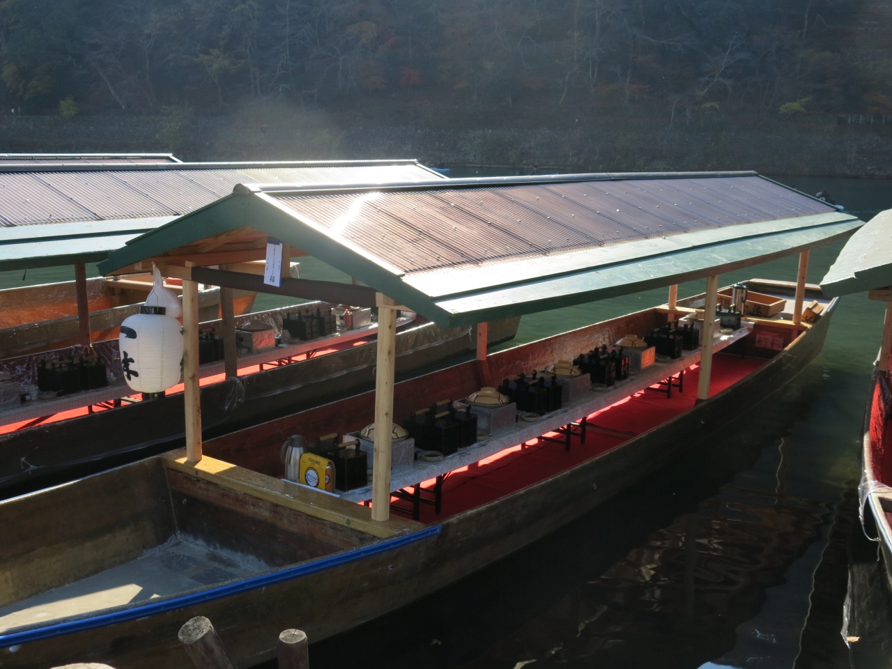 屋形船 (嵐山通船)では、大きな屋形船から小型のものまで、様々な形、大きさのものが有ります。二人きりでのんびりと楽しむ事もできる、そんな屋形船です。四季折々の風景が楽しめますので、ぜひ、一度、行ってみてください。