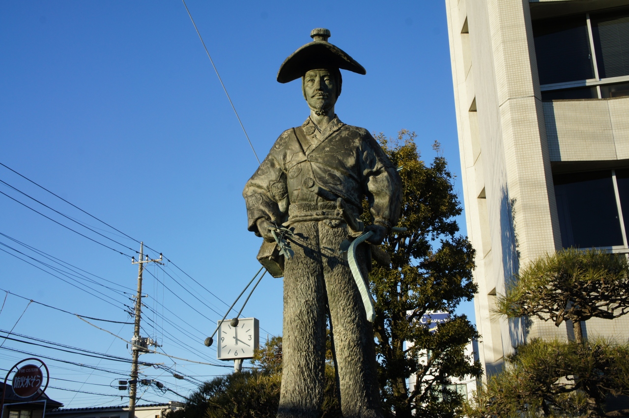 太田道灌像は、川越市役所の敷地、角にたっています。