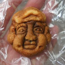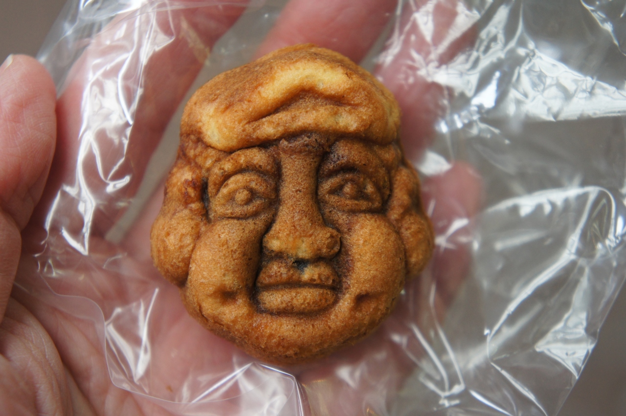 ゼイタク煎餅は、日本で二番目に古い商店街、佐竹商店街の中ほど。店頭のガラスのショーケースに人形焼きが並んでいました。人の顔の人形焼きで、表情がとっても面白い。6種類あるんだそうですが、眺めているだけでも楽しくなりますね。