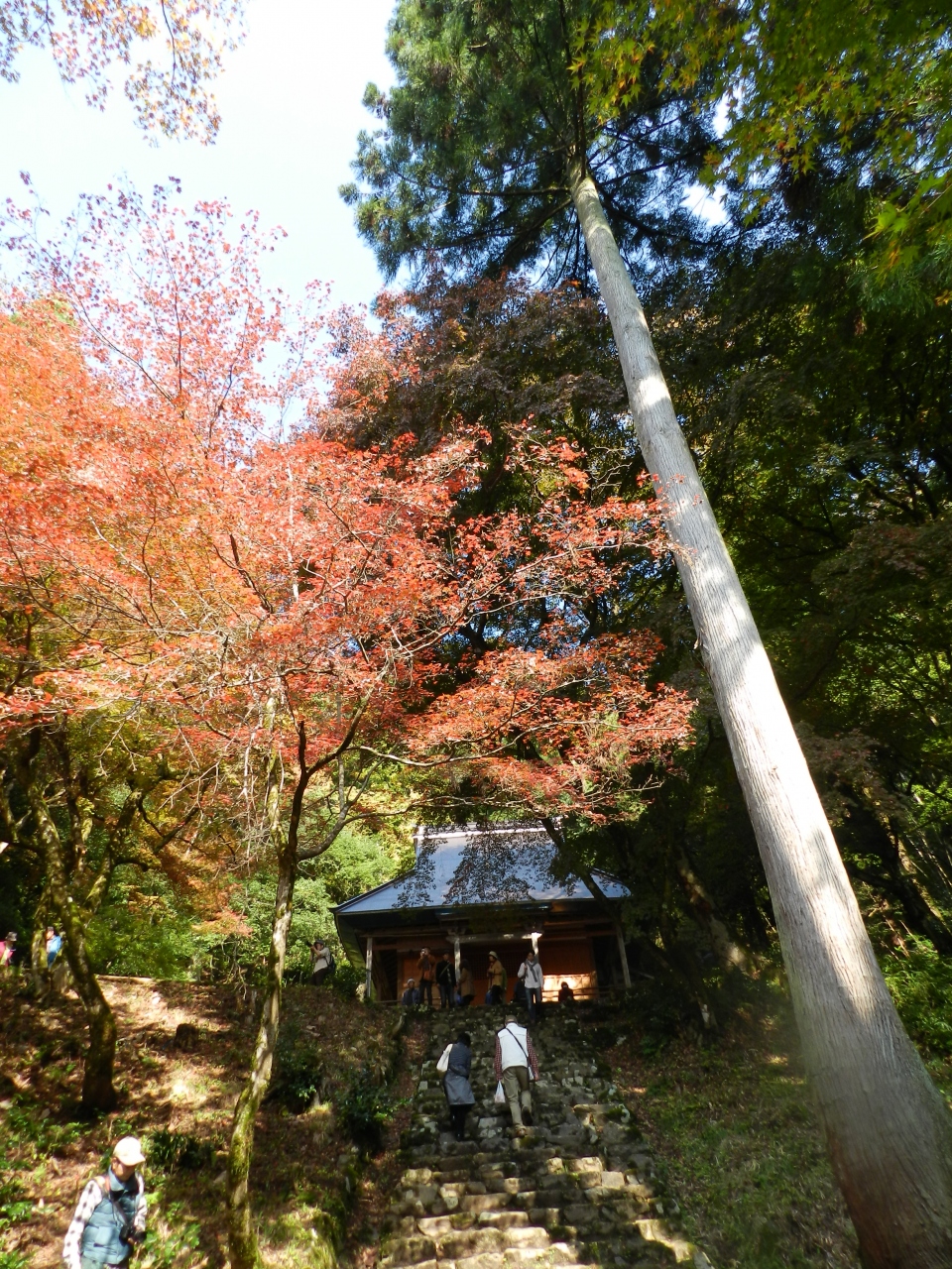 途中で見られる紅葉、参道の石段付近の紅葉。