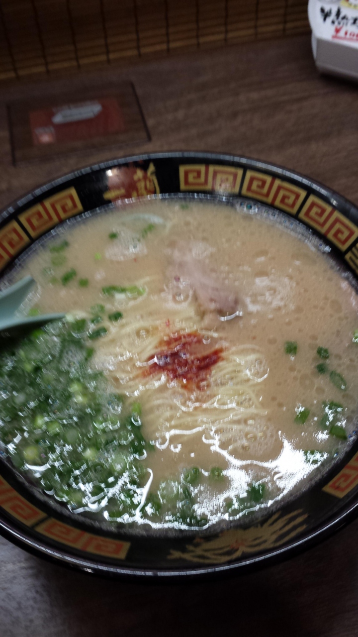 1人1人区切られたスペースで、ラーメンと向き合います。量は少なめです。替え玉をすることを前提にした量のようです。