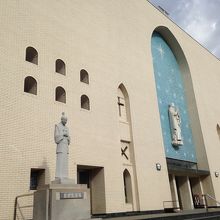 教会の敷地内にはガラシャ像とキリシタン大名の高山右近の像があります。
