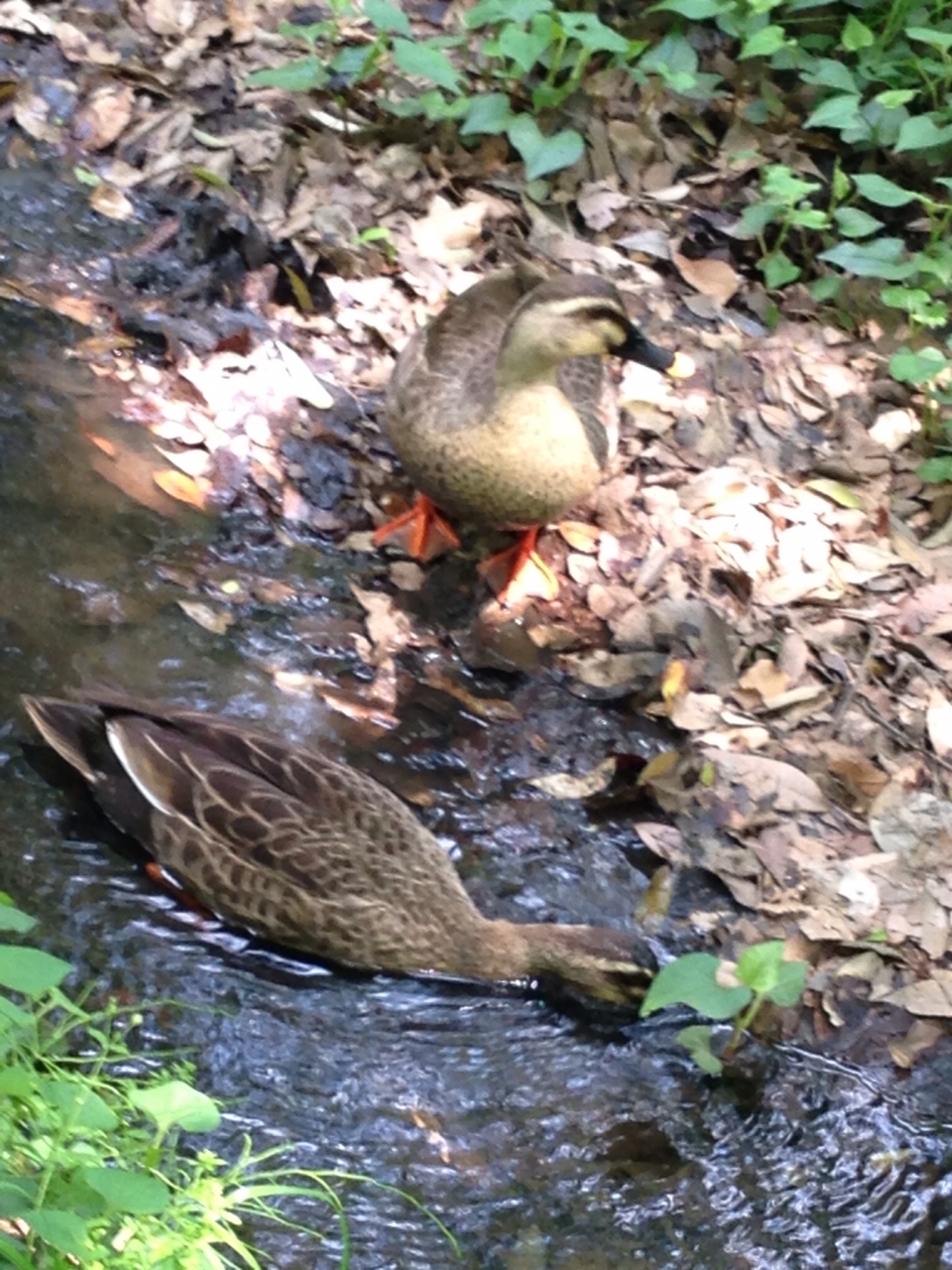 美しい木立や芝、大きな池、道沿いを流れる小川。公園をつなぐせきれいの道をのんびり歩いていると、至る所で『鴨の夫婦』に出くわして、なごまされます。