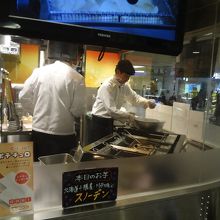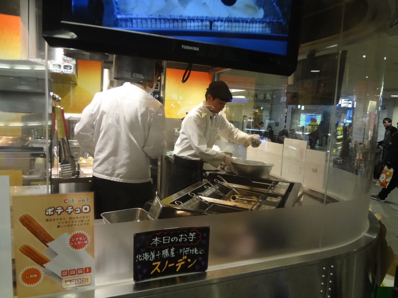店員さんがその場で揚げていて、何とその場で揚げたてのポテトチップが食べられます。その揚げたてのポテトチップは、こんなにも美味しいのか、と思うほど。店内にはカルビー商品も売っていますが、この揚げたてポテトチップはお勧めです。