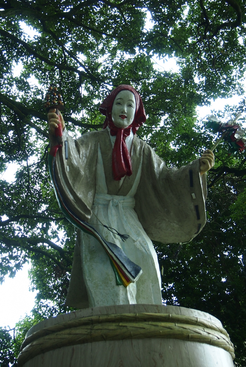 そして、階段が結構凄いです…。入り口の天の鈿女様の電動の人形に
